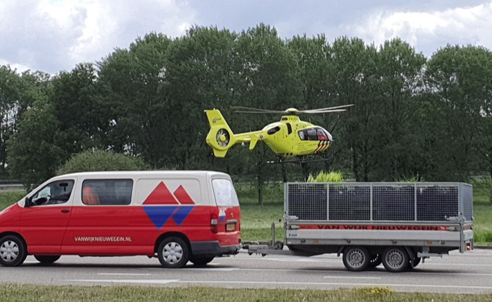 Foto Ricardo Vervoorn Rijkswaterstaat: De Traumaheli landt. Naast ambulances was ook het Mobiel Medisch Team opgeroepen. Het slachtoffer is zwaargewond overgebracht naar het ziekenhuis.