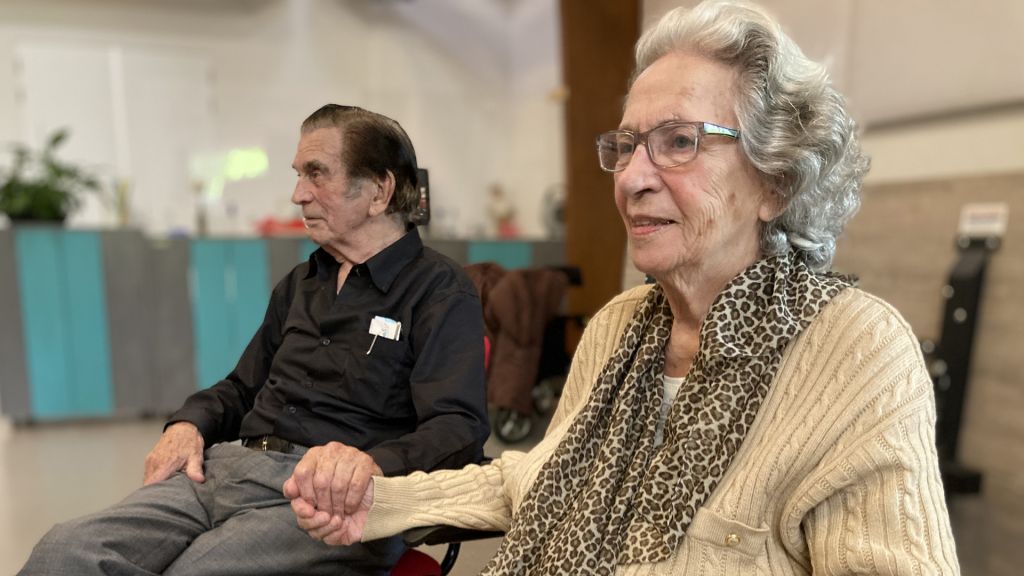 Henny Bouman is netjes gekleed. Ze heeft dementie en zingt vrolijk mee. Helemaal tijdens het nummer ‘Utereg m’n stadsie’ van Herman Berkien. “Jij komt zeker uit Utrecht?”, vraagt een vrijwilliger. Bouman beaamt dat en noemt meteen de plekken in Utrecht waar ze heeft gewoond. Regelmatig kijkt ze naar haar buurman en goede vriend Grieto Kuiper die ook aan dementie lijdt. Die haalt, als ik zijn naam vraag, met een lach op zijn gezicht snel een kaartje met persoonsgegevens uit zijn portemonnee. De rest van de middag blijft hij stil, maar tevreden.