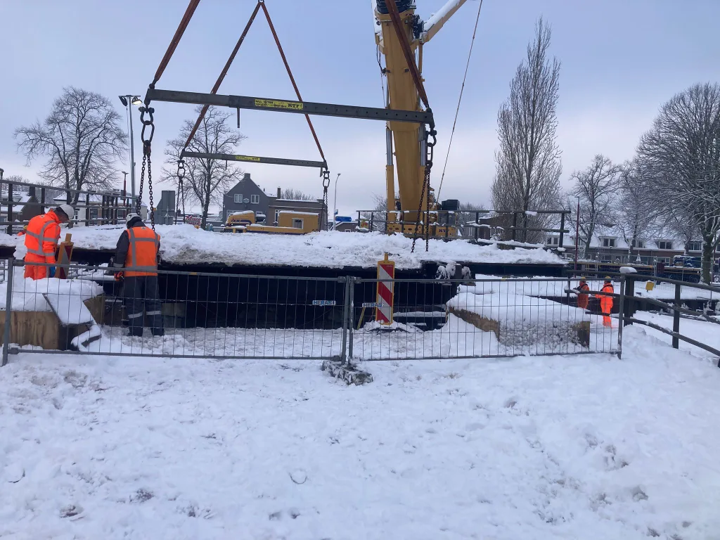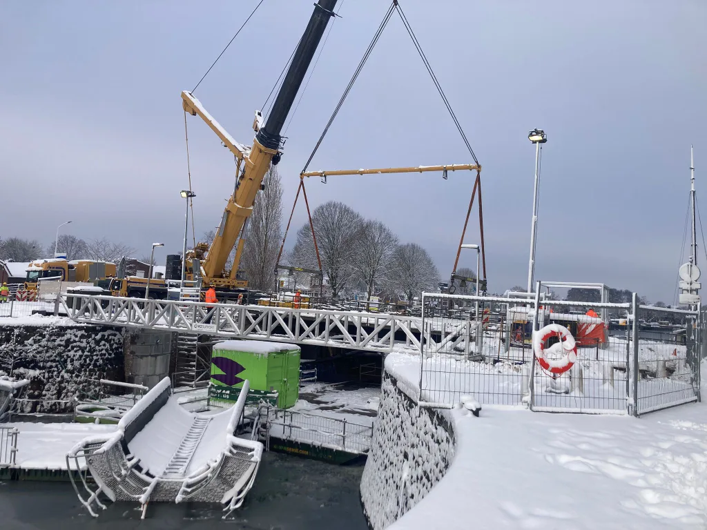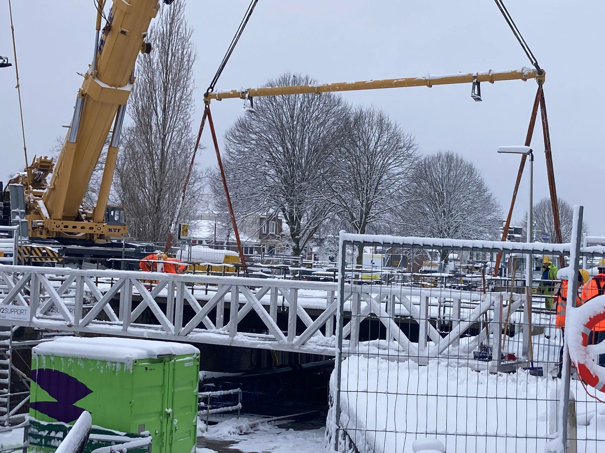 Aanvulling van de redactie. Onderstaande foto’s van de Wilhelminabrug die op 5 januari werd weggetakeld.