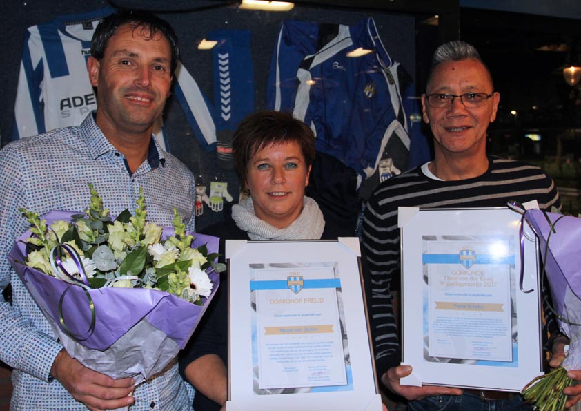 Tijdens de Algemene Ledenvergadering wordt Frans Schultz uitgeroepen tot vrijwilliger van het jaar. Schultz heeft zich de afgelopen jaren met veel enthousiasme ingezet voor de vereniging. In relatief korte tijd heeft hij zich vanuit een sterk verantwoordelijkheidsgevoel, gekoppeld aan een innerlijke gedrevenheid, ontwikkeld tot een vrijwillige allrounder met een model-mentaliteit. Zo haalde hij als leider en verzorger bij dames 1 het afgelopen seizoen zowel het kampioenschap in de vierde klasse als ook de KNVB-beker binnen. Sinds dit seizoen is hij ook actief als teammanager bij heren 1 en is hij leider bij dames 2. Ook Frans is een vrijwilliger in hart en nieren. De Thea van der Kaaij Vrijwilligersprijs 2017 is hem dan ook op het lijf geschreven.