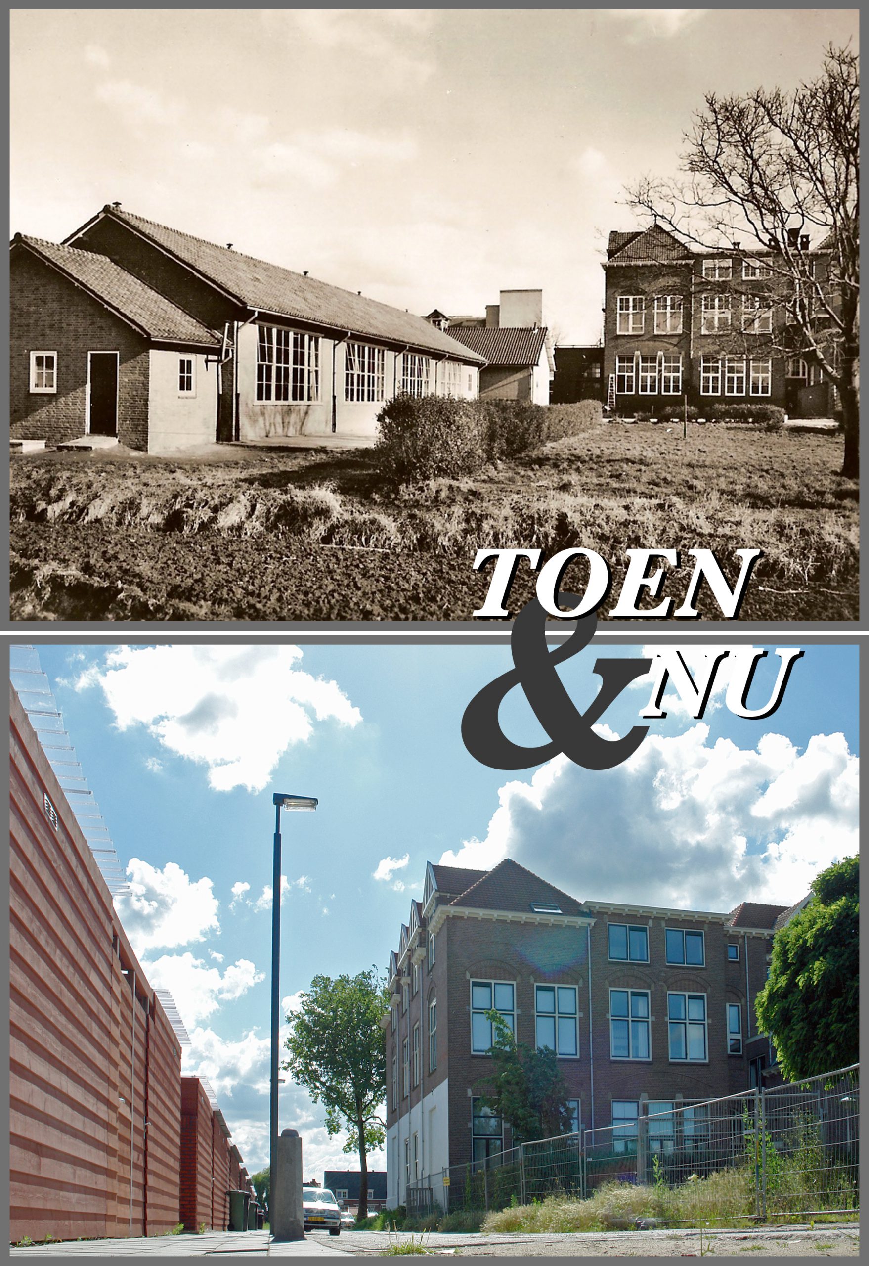 ‘In 1965 kon nog deze foto worden gemaakt van het Prins Hendrik Internaat voor schipperskinderen en (links) het schoolgebouw. Het internaat is gebouwd rond 1915. School en internaat tellen in het jaar van de stichting 94 leerlingen. In de vijftiger jaren stijgt het leerlingenaantal explosief en er is behoefte aan nieuwbouw voor zowel de school als het internaat. Eerst komen bij de school enkele oude treinwagons te staan, die dienst doen als leslokalen. Later komt er een schoolgebouw. In 1985 komen school en internaat leeg te staan als aan de Nijverheidsweg de nieuwbouw gereed is gekomen’ aldus in de intro van de Historische Kring Nieuwegein bij de foto van Toen deze week.