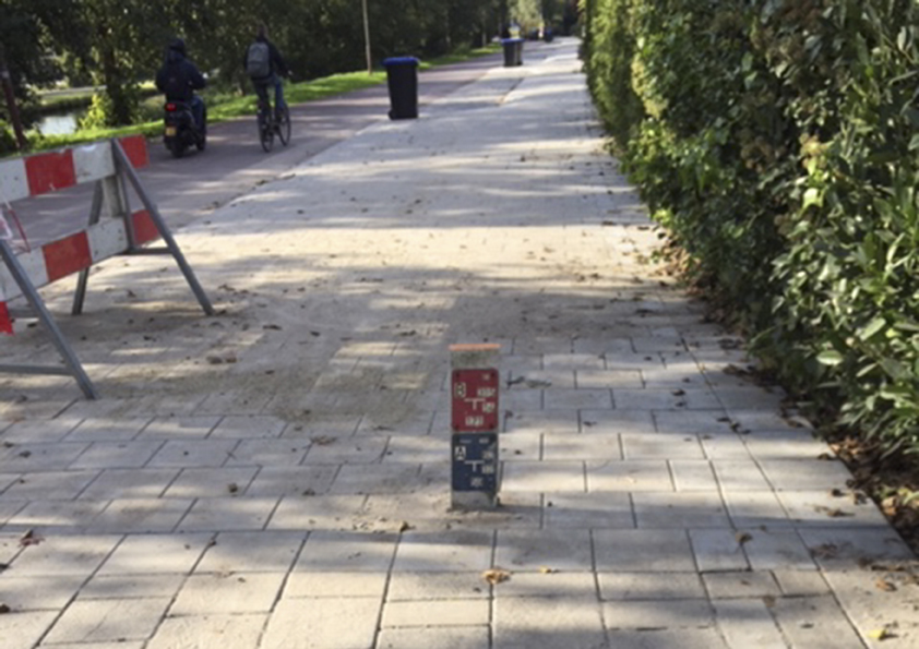 Staken in eerste instantie de putten zo’n vijftien centimeter boven de nieuwe bestrating uit, nu staat er plompverloren een paaltje midden op het trottoir. ’t Ziet er, hoewel komisch, best gevaarlijk uit! Waarom nou toch Nieuwegein?