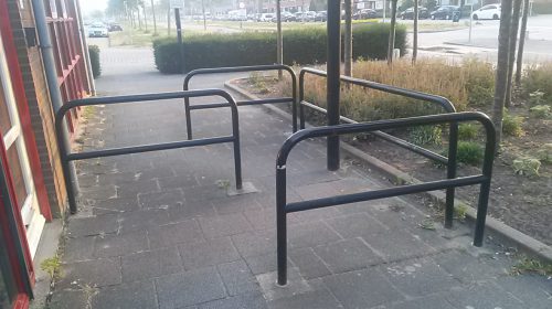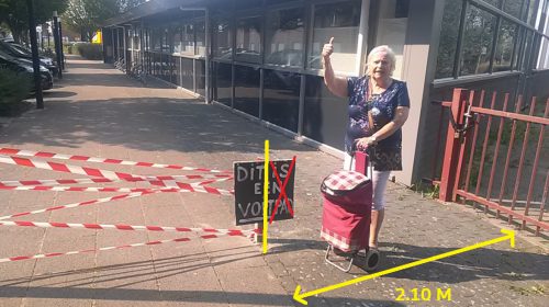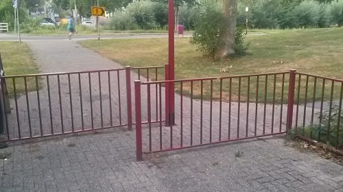 Mijn tijdelijke versperring om brommer en fietsvandalen, in alle leeftijden trouwens, te weren van het voetpad naast de ‘GalecopperBoog’ is door de gemeente begin oktober 2020 verwijderd omdat iemand (een onoplettende fietser, op het voetpad?) er zich wel eens aan zou kunnen bezeren… Terwijl er een zeer ruime opening vrij was gehouden van 2.10 meter ten behoeve van scootmobielen etc.