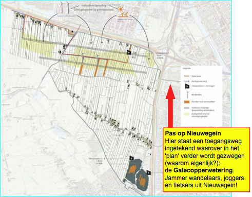 ‘Onlangs, in een van de vele artikelen over de mogelijke werkzaamheden in polder Rijnenburg (woningen, windmolens, zonnepanelen) wezen we er op dat er, nogal sneaky, een weg staat ingetekend vanaf de Galecopperzoom onder de A2 naar deze polder. Daarbij tekenden we aan dat die verbinding voor veel overlast aan wandelaars, fietsers, recreanten in de Galecopperzoom zou zorgen en dat de Galecopperwetering daardoor voorgoed zou worden ‘vernield’.’ Kijk maar hier wat we schreven in De Digitale Nieuwegeiner op pagina 3 van 6 november jl.