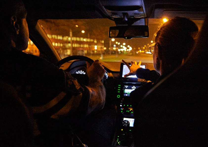 Beeld vanuit een achtervolgende auto van de politie. Foto: Politie