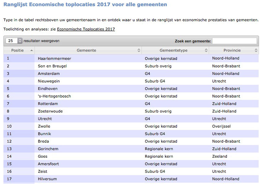 Bedrijven vestigen zich graag in Nieuwegein. Dit blijkt uit onderzoek van Bureau Louter. Nieuwegein staat op deze lijst van Economische Toplocaties stevig op een vierde plek. Alleen in het jaar 2000 stond Nieuwegein ook op deze plek. In 2014 en 2015 moest Nieuwegein genoegen nemen met respectievelijk een 83-ste en 87-ste plek. De gemeente Haarlemmermeer staat op de eerste plek, dit overigens al jaren. Grote steden zoals Utrecht, Rotterdam en Eindhoven moeten Nieuwegein voor laten gaan.