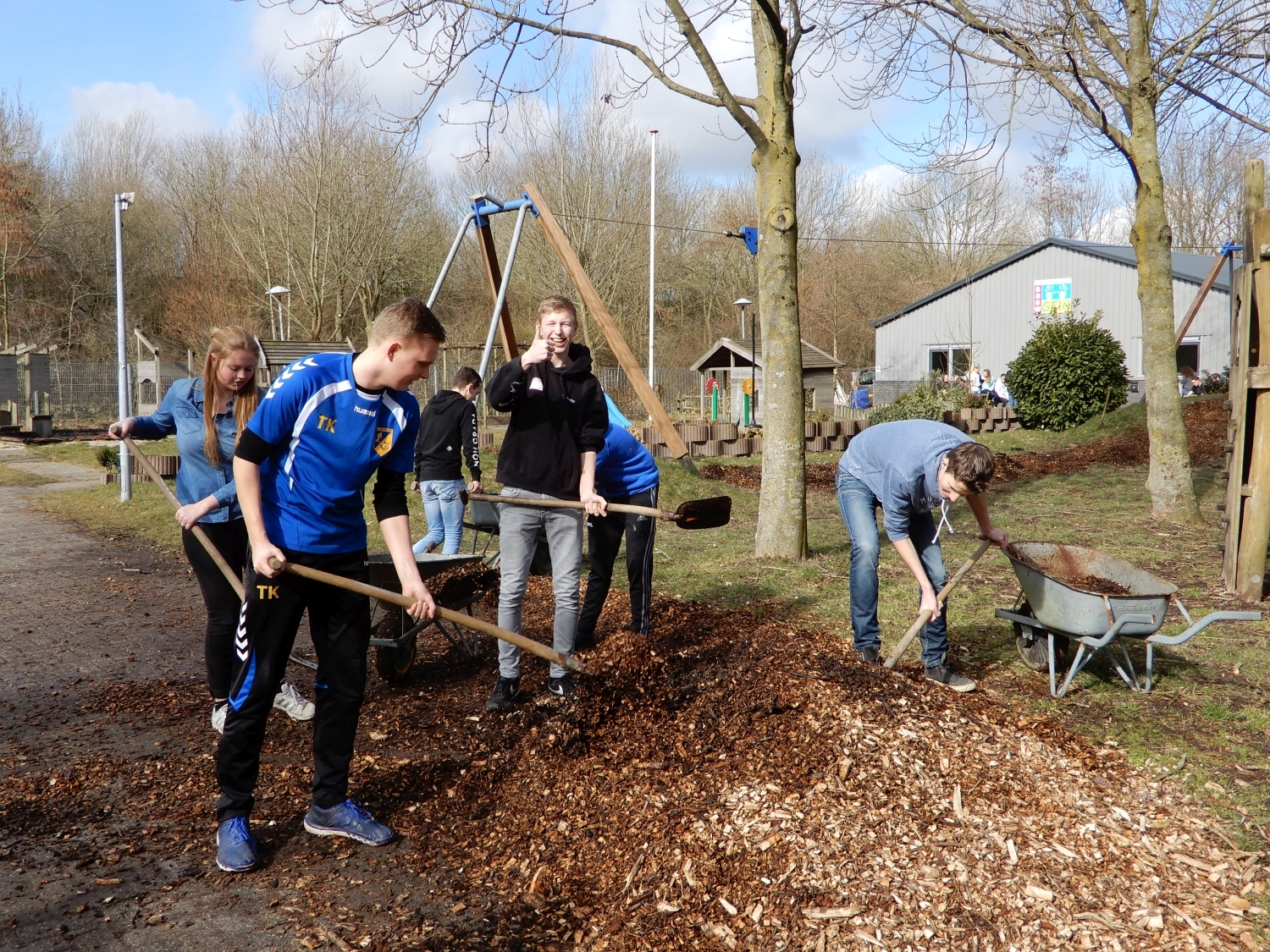 Leerlingen van het Horeca & Toerisme College doen ook dit jaar mee met NLdoet. Op de foto zijn ze aan de slag bij bouwspeeltuin Bouwgein. Foto: Karin Beenen