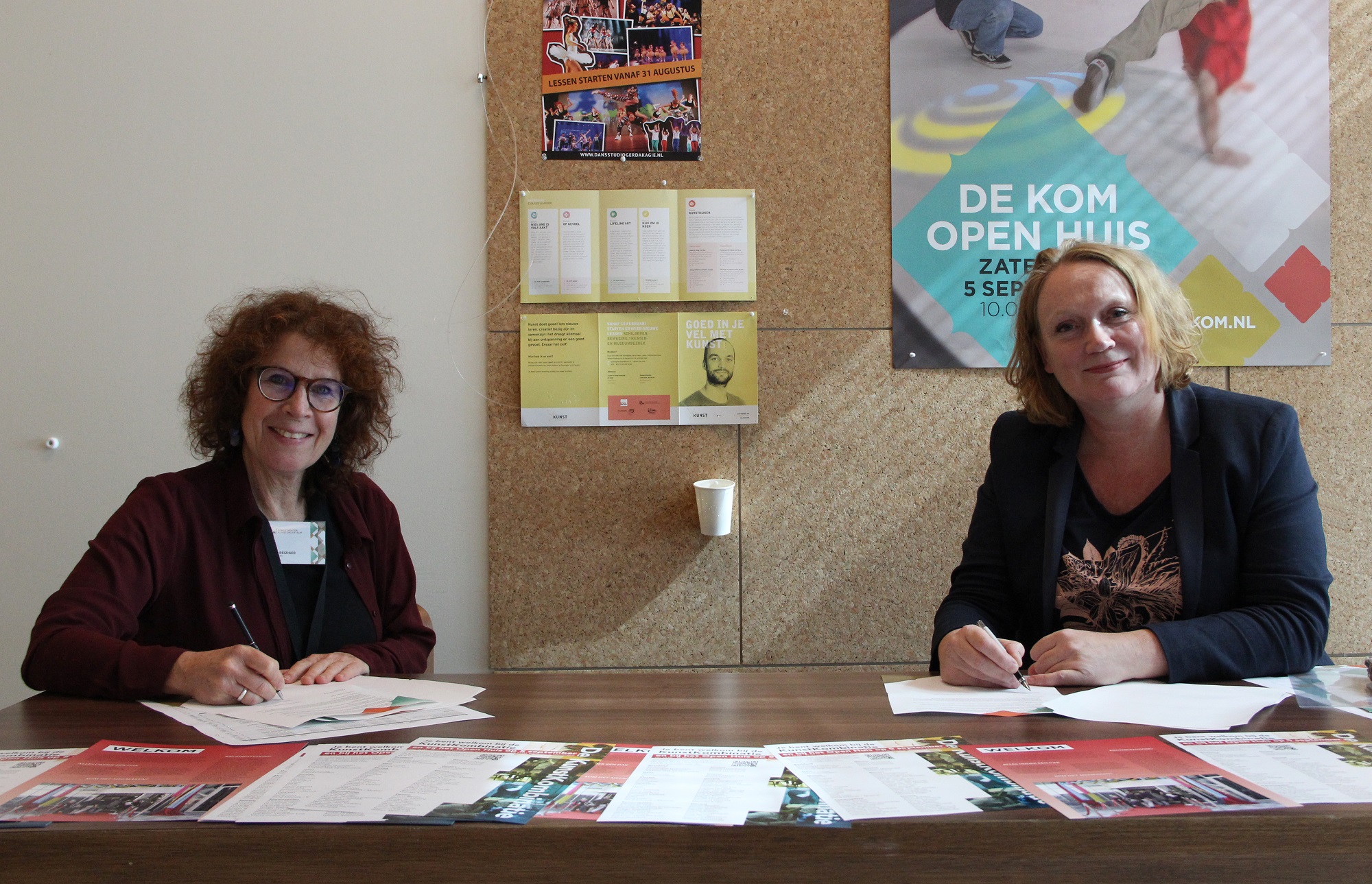 Na een succesvol Open Huis afgelopen 5 september ondertekenden Ariane Kop, directeur van DE KOM en Elsie Reiziger, voorzitter van de Kunstkombinatie, een nieuw convenant voor de samenwerking tussen DE KOM en de Kunstkombinatie voor de komende 5 jaar.