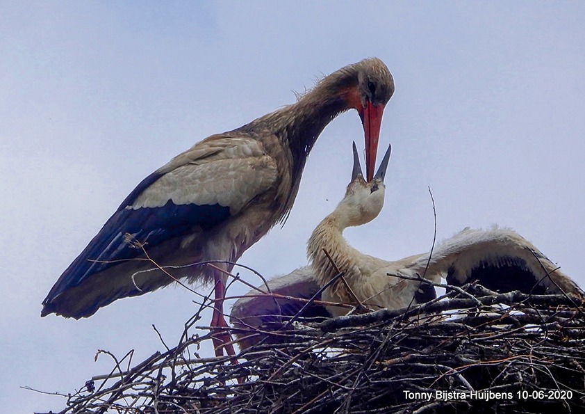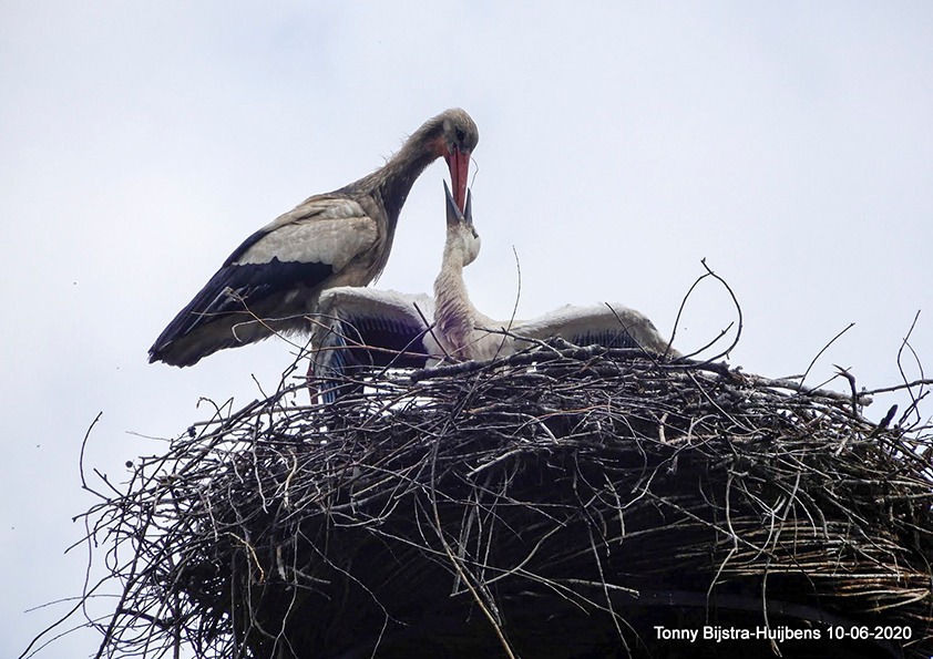 Onze redactie krijgt geregeld mooie plaatjes opgestuurd van onze lezers. Zo ook vandaag van Tonny Bijstra-Huijbens. Tonny zag woensdagmorgen jl. dat de jonge ooievaars aan de Nedereindseweg eten kregen van hun ouders, en dat werd vastgelegd. Mooi toch! Dank Tonny, zo kunnen we er allemaal van genieten.