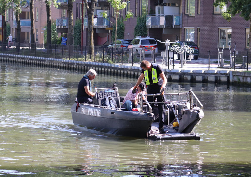 Met een grote magneet wordt vandaag vanaf een bootje gezocht in het water. Verdere mededelingen over de aanleiding van de zoektocht doet de politie vooralsnog niet.