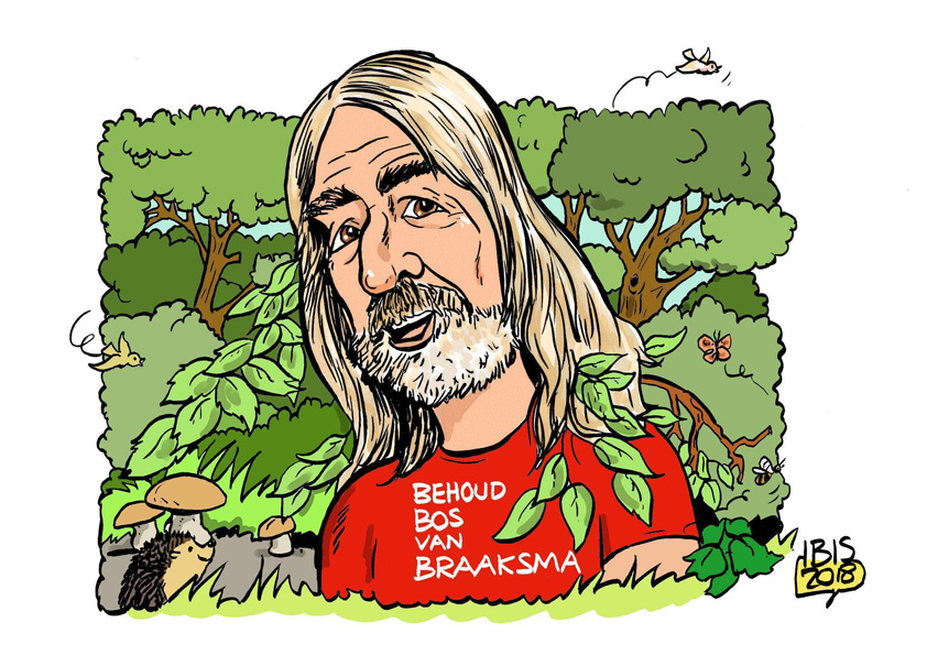 In de komende nieuwsbrief van vrijdag aanstaande besteden wij aandacht aan het behoud van het ‘Bos van Braaksma.’ Dit bos ligt achter de woning aan de Handelskade nummer 16. Bekende ornitholoog Sjoerd Braaksma had dit bos aangelegd in de jaren ’70. In een videoreportage spraken we met Piet van Rheenen. Dit liet onze karikaturist niet onopgemerkt voor bij gaan. Daarom deze karikatuur. Meer over dit nieuws item leest u hier. En ………….. Piet komt aan het woord.