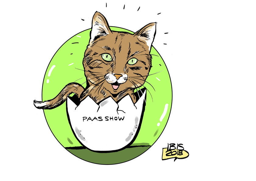 Op zondag 1 en maandag 2 april aanstaande houdt Mundikat een unieke Mundikat Paasshow in Nieuwegein. Tijdens de show kunt u genieten van meer dan 30 soorten rassen, 700 katten en poezen in de Beursfabriek aan de Symfonielaan 5 in Nieuwegein. Tja en dat met Pasen dat gaf onze karikaturist Jan Ibelings wel een mooi gevoel in zijn PAASPENTekening.