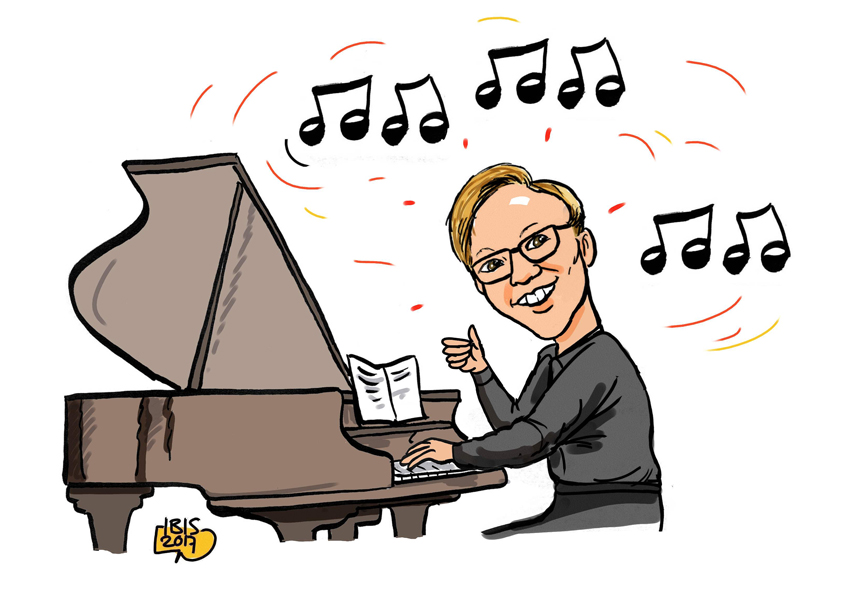 Voor De Digitale Stad Nieuwegein (pen.nl) maakt Jan Ibelings iedere week een cartoon over een actuele Nieuwegeinse gebeurtenis of een karikatuur van een BN-er (bekende Nieuwegeiner) of MBN-er (minder bekende Nieuwegeiner). De tekeningen zijn te koop. Heeft u interesse? Mail voor meer informatie naar: info@karikaturist.nl. Deze week Radu Ratering, hij speelt piano.