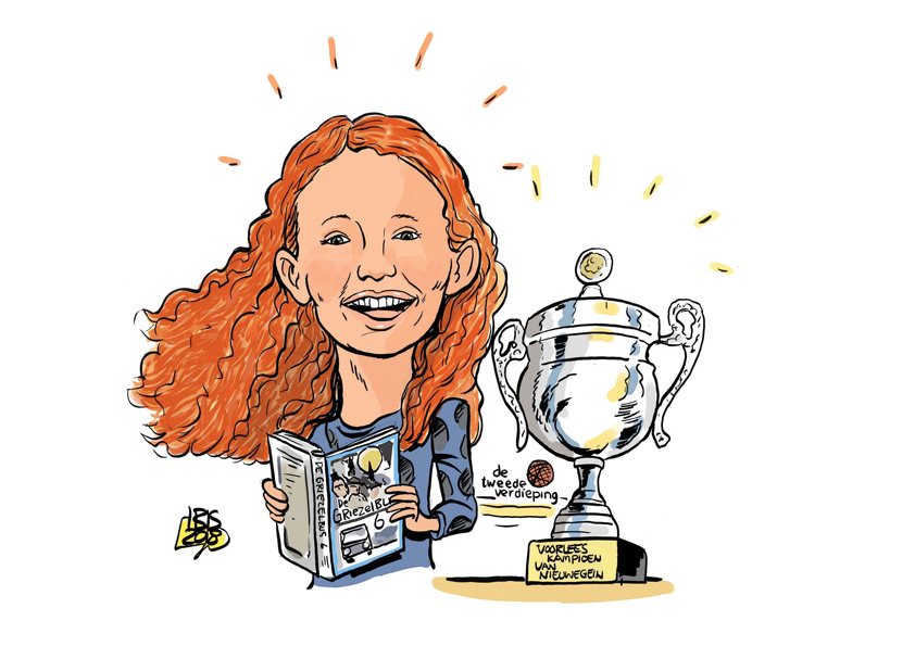 Voor De Digitale Stad Nieuwegein (pen.nl) maakt Jan Ibelings iedere week een cartoon over een actuele Nieuwegeinse gebeurtenis of een karikatuur van een BN-er (bekende Nieuwegeiner) of MBN-er (minder bekende Nieuwegeiner). De tekeningen zijn te koop. Heeft u interesse? Mail voor meer informatie naar: info@karikaturist.nl. Deze week: ‘Sophie Kwakernaak, zij won het voorleeskampioenschap in Nieuwegein.’