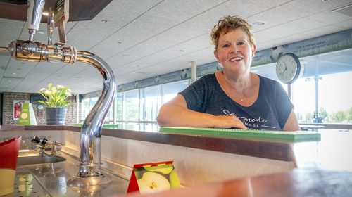 Arend Bloemink: ‘Gek eigenlijk. Ik ben nu al zo vaak bij JSV geweest. Jarenlang op zaterdag en zondag de wedstrijden om de United Jeugd Cup gefotografeerd. Dat prachtige toernooi. Met al die internationale jeugdteams. Met die fantastische sfeer. Met bijna altijd prachtig weer. En nu de UJC dit jaar voor het eerst omwille van de financiën niet meer plaatsvindt, juist nú kom ik pas voor het eerst in de kantine van JSV. Op een vrijdagmorgen. Een schitterende, lichte ruimte. Met een glimmende toog. En achter de toog het Portret van déze Week, de vrouw die de kantine beheert en de vrijwillers aanstuurt: Ineke!’