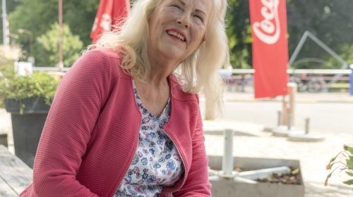 ‘Gegeven de warmte eerder deze week stel ik voor dat we een van de bankjes aan Het Sluisje als fotolocatie gaan gebruiken. En daar gaan we dan. Sonja vertelt honderduit. Over haar leven vóór Nieuwegein. Over haar leven ín Nieuwegein. Over de vele aardige Nieuwegeiners. Over al die fijne contacten die ze, in de nog korte periode dat zij nu in Nieuwegein woont, heeft opgedaan. Veel van die contacten deed en doet zij op tijdens haar vrijwilligerswerk en tijdens de vele activiteiten waaraan zij in Nieuwegein deelneemt.’
