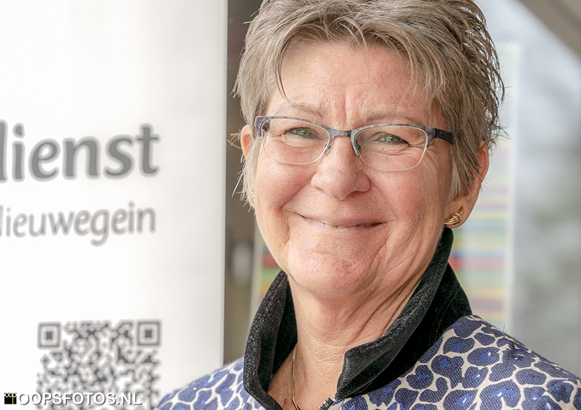 Arend Bloemink: ‘Deze keer fotografeerde ik het Portret van de Week deels óók ‘in functie’. Ik tref haar een half uurtje voordat zij wethouder Hans Adriani de microfoon overhandigt. Het officiële moment van het in gebruik nemen van de tweede AHN-duofiets. Voorafgaand aan die officiële gebeurtenis maken we, informatie uitwisselend, de portretfoto’s. En ik fotografeer Monique uiteraard ook tijdens de feestelijkheden.’