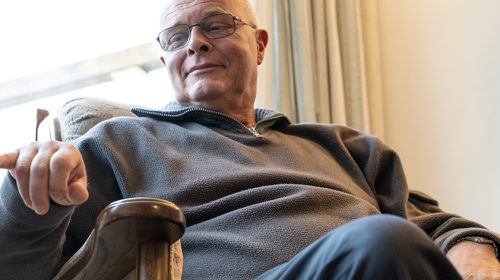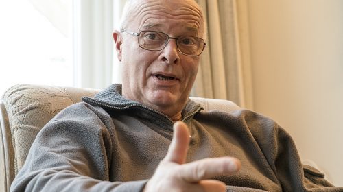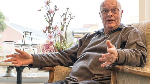 Arend Bloemink: ‘Zo. De voordeur zwaait open en daar stáát hij. Een forse kerel. Zo iemand die je niet snel over het hoofd ziet. Zo iemand die er ís. ‘Zozo, een gróte man’, is zo ongeveer het eerste wat ik zeg nadat we ons aan elkaar hebben voorgesteld. ’Tja,’ zegt het Portret, ’tja, dat biedt voor- en nadelen…’.