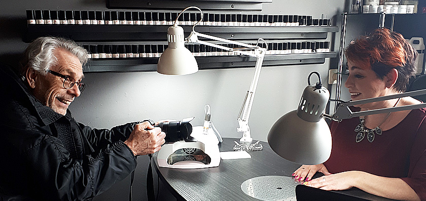 ‘Ze wil het liefst in haar nagelstudio worden gefotografeerd. Achter haar behandeltafel. Op haar eigen, vertrouwde plekje. Daar ben ik het hartgrondig mee eens. Ik vind het belangrijk dat men zich vertrouwd en prettig voelt tijdens de portretsessie.’