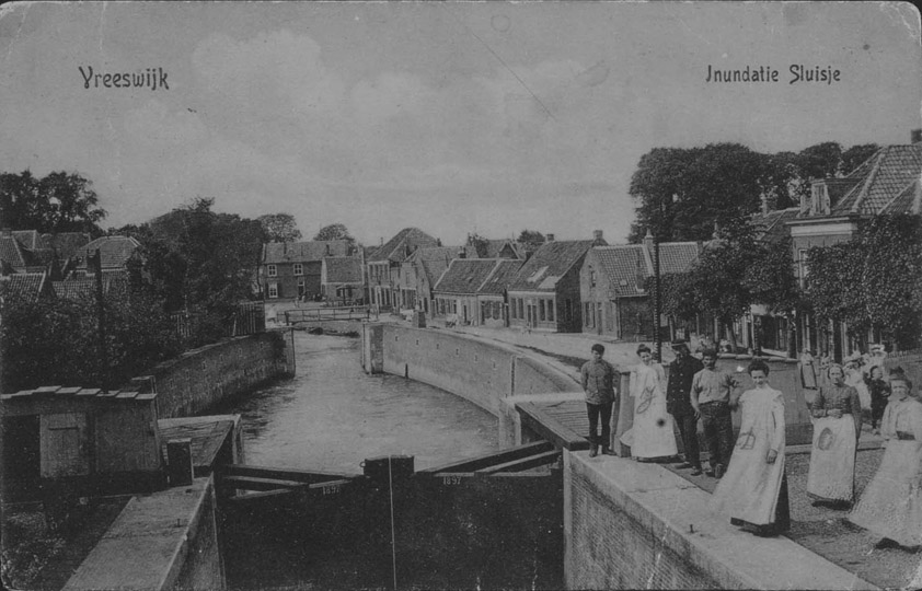 De kaart in het archief van deze week komt uit 1908. De sluis is in 1817 aangelegd als tijdelijke vervanger van de Oude Sluis. Laatstgenoemde sluis is in de periode 1821-1824 gerestaureerd en vergroot. De spuisluis deed daarna nog dienst tot in het begin van de 20e eeuw voor de kleine scheepvaart. De spuisluis is in 1985 gerestaureerd.