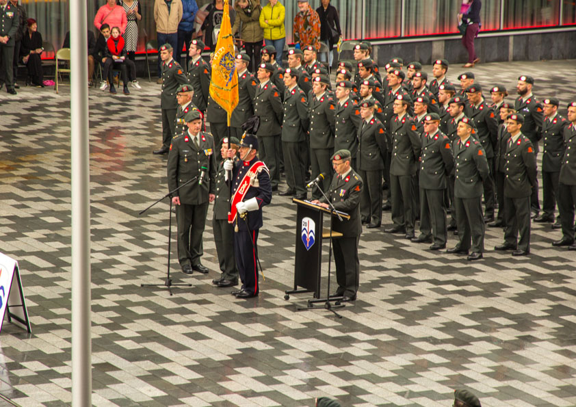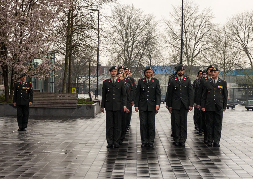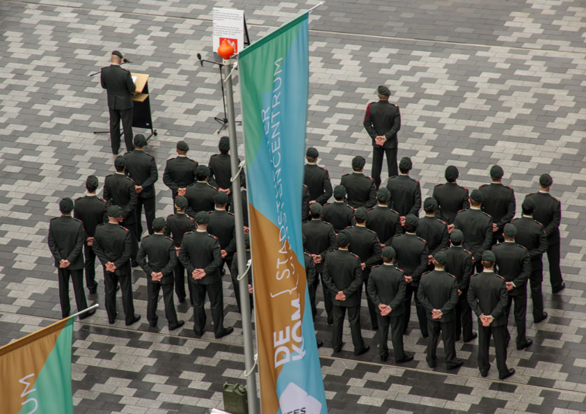 Op het Stadsplein in Nieuwegein hebben zaterdagochtend zo’n vijftig nieuwe reservisten een militaire eed afgelegd. De militairen behoren tot het 20ste Natresbataljon van het Korps Nationale Reserve.
