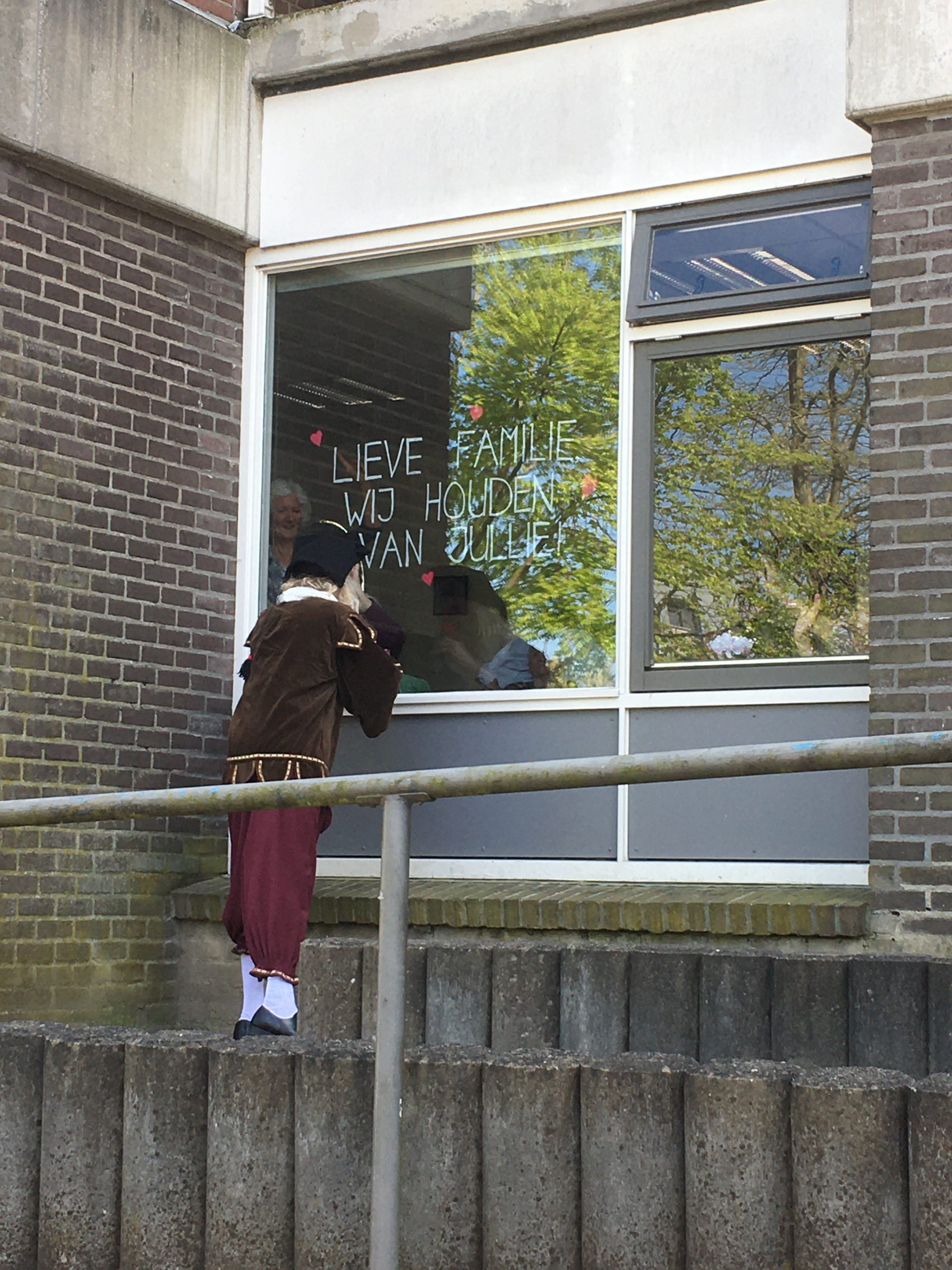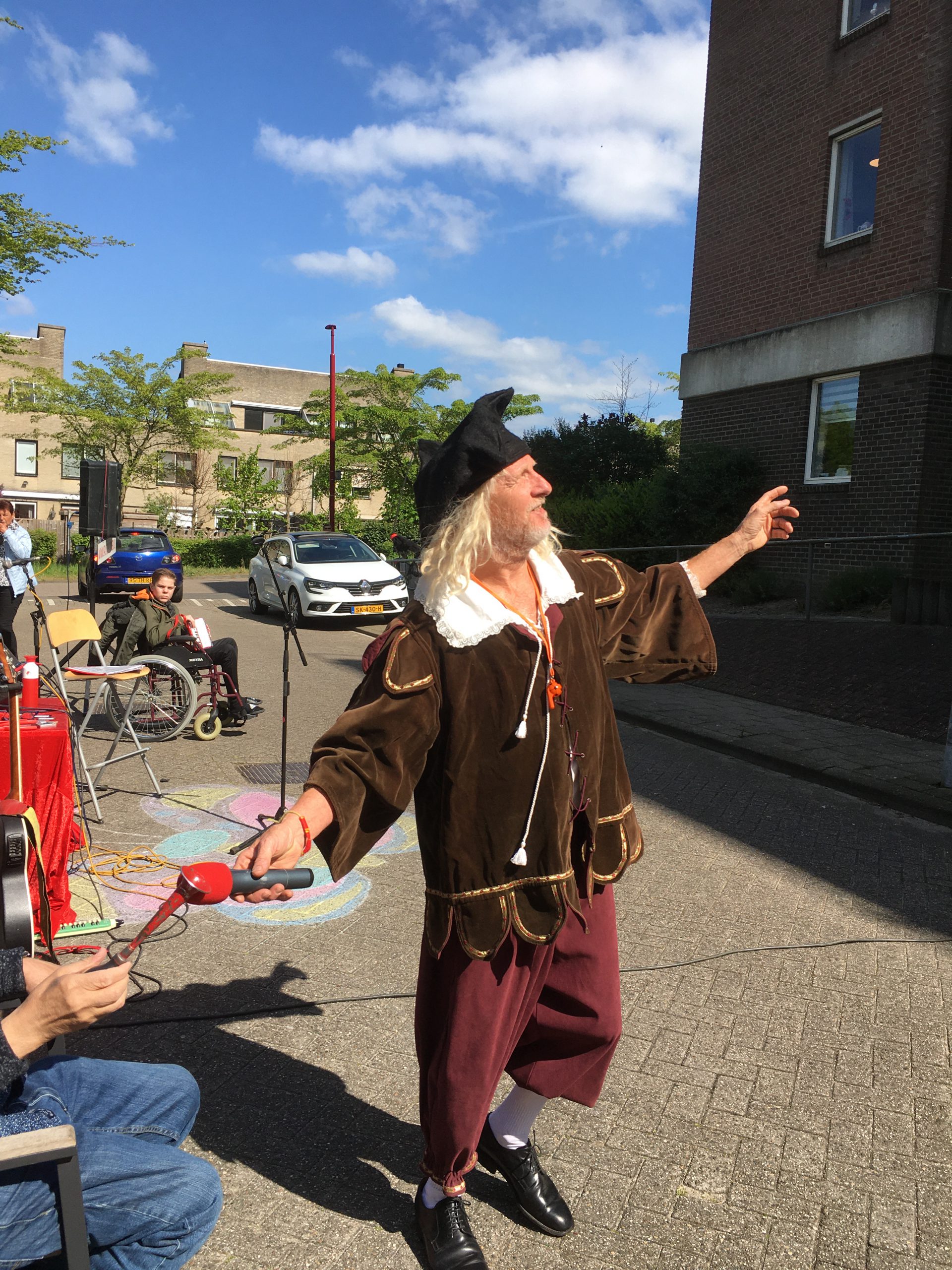 Zaterdagmiddag verraste Troubadour ‘Rooie Arie’ de bewoners van Woonzorgcentrum Vreeswijk. ‘Rooie Arie’ was gevraagd door de kinderen van één van de bewoners om te komen zingen. De nu 86-jarige vrouw had ‘Rooie Arie’ eerder op een verjaardagsfeestje gezien van haar dochter en genoot van zijn optreden. Zij woonde toen nog zelfstandig en genoot van de oude liedjes zoals ‘In een ruituigie’ en ‘Er zitten twee motten.’ Vanwege de Corona-crisis wilde de dochter haar moeder weer laten genieten. Natuurlijk wel op afstand!