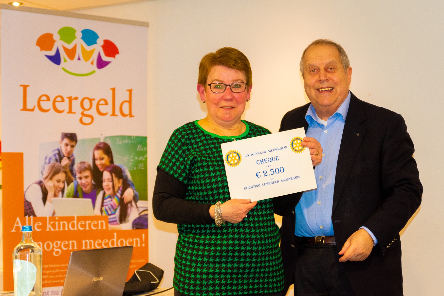 Rotarycheque voor Stichting Leergeld