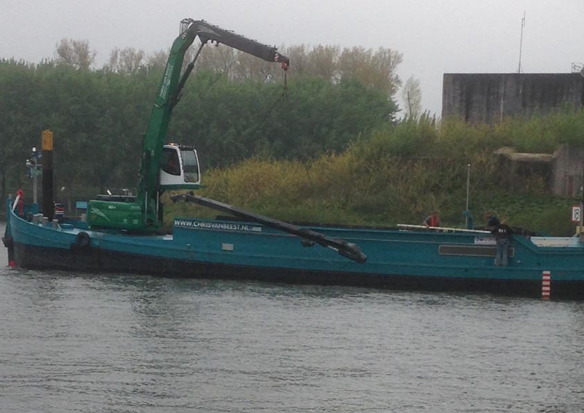 Duikers halen de laadkraan van de bodem van het Amsterdams Rijnkanaal