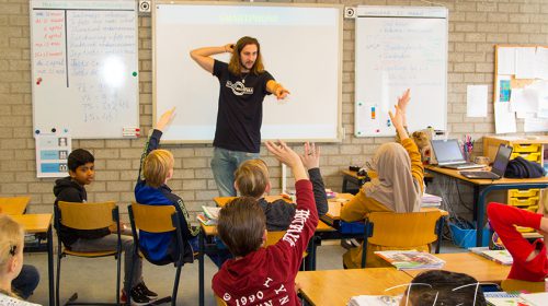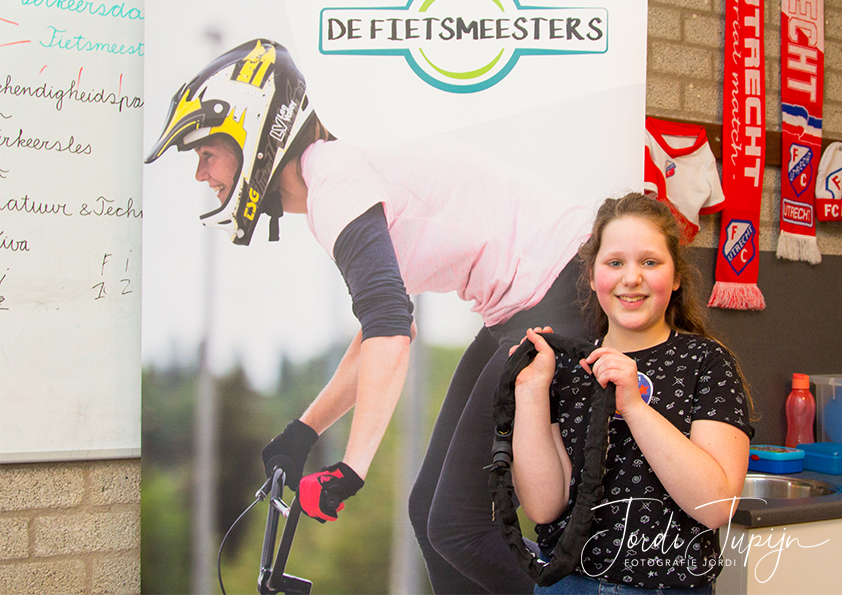 Sinds half maart staat de fiets centraal voor diverse basisschoolkinderen in Nieuwegein. Vanaf die dag komen De Fietsmeesters met hun educatief lesprogramma langs op verschillende basisscholen om de leerlingen van groep 7 op geheel eigen wijze te leren over verkeersveiligheid. 21 Maart kwamen jl. kwamen de Fietsmeesters en de Nieuwegeinse jeugdfietsambassadeur Fenne van Regteren naar de Schouw om les te geven.
