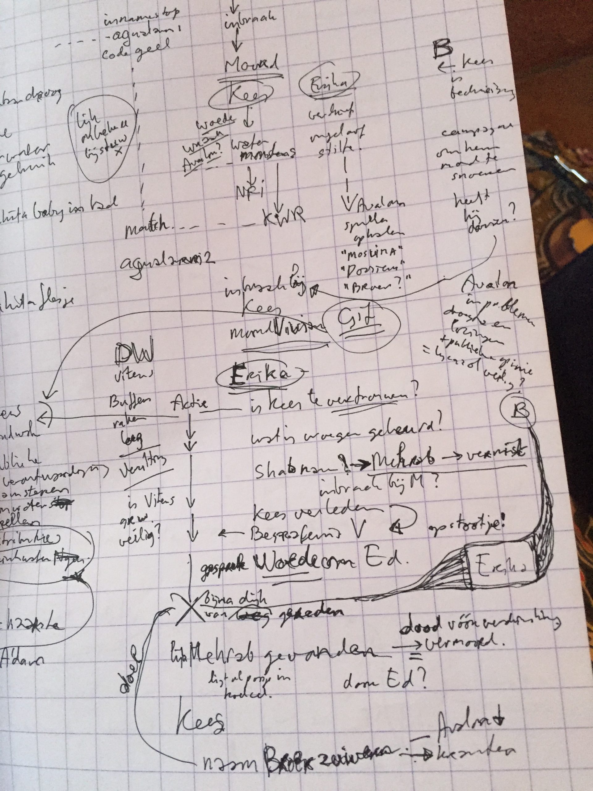 Heleen: ‘Op zondag bekijk ik mijn werk voor de komende week en besluit ik dit keer eens op tijd met mijn column te beginnen, zodat ik hem zonder haastwerk uiterlijk woensdagmiddag in kan leveren. Dat wordt dan naast het vaststellen van de structuur voor mijn nieuwe thriller en daaraan verder schrijven mijn agenda voor de komende week. De structuur van een boek hoeft niet altijd de chronologische verhaallijn te zijn en ik ben zoekende naar een manier om de gebeurtenissen die niet direct met de hoofdpersonen te maken hebben op een vloeiende manier te vertellen. Ik heb het me niet gemakkelijk gemaakt, omdat ik me in de hoofden van technici en chemisch analisten moet verplaatsen en er zijn alinea’s waarbij ik in elke zin wel een research-rapport moet opzoeken voor de juiste woorden.’