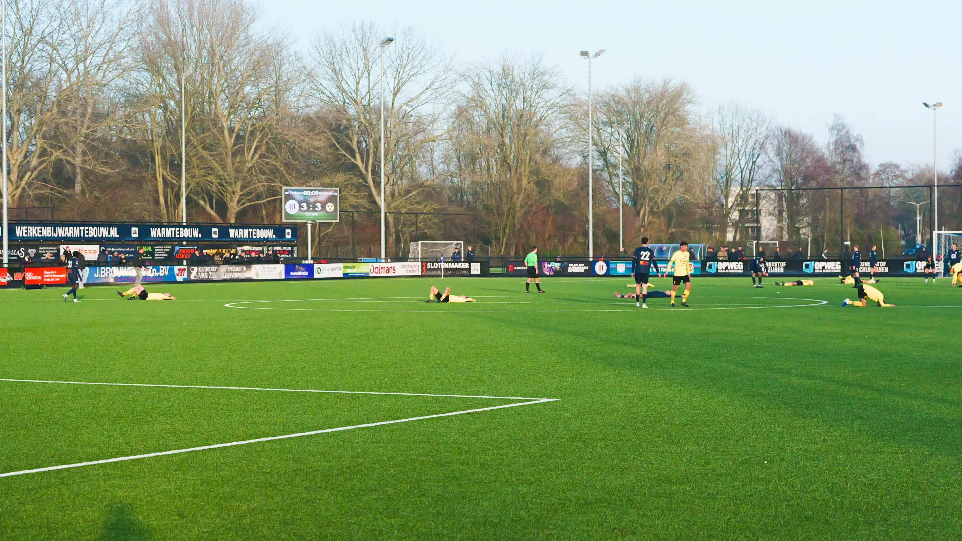 Maar scheidsrechter Jesse Knetsch uit Wijk bij Duurstede besloot vanwege oponthoud flink wat extra tijd toe te voegen, uiteindelijk maar liefst acht minuten. Wie dacht dat de strijd gestreden was, kwam bedrogen uit. In een verbluffende slotfase kantelde de wedstrijd meerdere keren. De 3-3 eindstand voelde voor Woudenberg als een mokerslag, ze zagen door dit resultaat de periodetitel naar De Meern gaan.