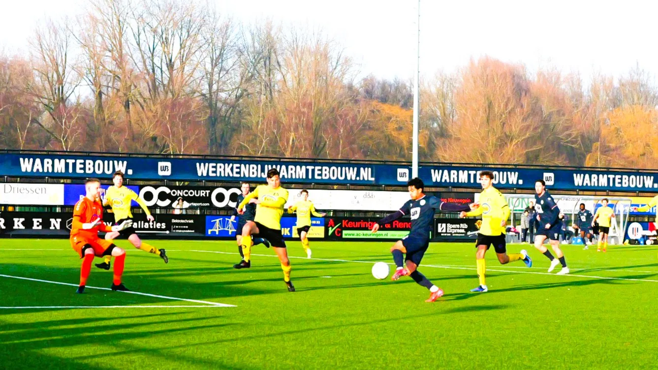 In de slotfase begon het spektakel. In de 92e minuut kreeg Timo Meerding opnieuw de bal op een plek waar hij tien minuten eerder nog ruim naast had geschoten, tot hoorbare ergernis van sommige zogenaamde supporters achter hem. Deze keer aarzelde hij niet en schoot hij wel raak, 2-2.
