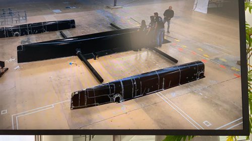 ‘Nu de boot officieel gedoopt is, kunnen we aan de slag met het echte testen, meten en eventueel aanpassen’, aldus Max. ‘We zijn vanaf augustus 2018 aan het bedenken, ontwerpen en produceren, maar nu gaan we weer een stap verder. Om straks de hoge golven en hevige windvlagen op open zee aan te kunnen, heeft de boot de vorm van een trimaran, oftewel 3 rompen. Dit betekent ook 28m2 aan zonnepanelen, wat even groot is als negen tweepersoonsbedden bij elkaar. Dankzij het gebruik van draagvleugels kan de trimaran op hoge snelheid ook vliegen boven het water. Deze draagvleugels tillen de drie rompen uit het water, waardoor de waterweerstand drastisch wordt verlaagd. Hierdoor behaalt de zonneboot een hoge snelheid op energie die enkel uit het zonlicht wordt verkregen. Verder kunnen er dit jaar niet één, maar drie passagiers in de boot varen, waarmee we laten zien dat varen op zonne-energie ook voor de passagiersvaart een serieuze optie is.’