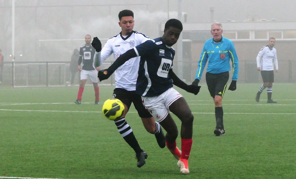 ‘Het hoe en waarom keeper Mitchell van Oort er niet bij was en vervangen werd door Mitchell Temming is mij niet duidelijk. Jammer dat uitgerekend hij in de 44e minuut op een kopbal van goaltjesdief Gokhan Yasar niet alert reageerde en zodoende de thuisploeg vlak voor rust langszij bracht. Onterecht in mijn ogen want eerder was Miguel Brown in het strafschopgebied al onder de kunstgraszoden gestopt, maar weigerde deze keer arbiter Verbij de bal op de stip te leggen.’