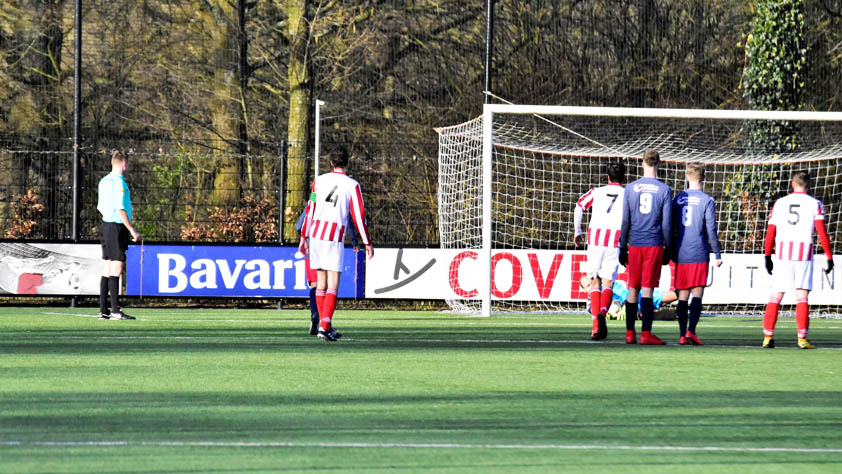 De Geinoord-doelman wist de door Sam Eerdmans niet al te overtuigend ingeschoten penalty te stoppen zodat de 2-1 op het scorebord bleef staan. ,,Daar waren we achteraf heel blij mee want ik vond FC De Bilt een tactisch moeilijk te bespelen tegenstander die het ons vooral na rust heel erg moeilijk heeft gemaakt en ook goede kansen heeft gekregen,’’ aldus trainer David Toxopeus na afloop. ,,Voor rust waren wij nog wel de betere ploeg, daarna niet meer. ‘’