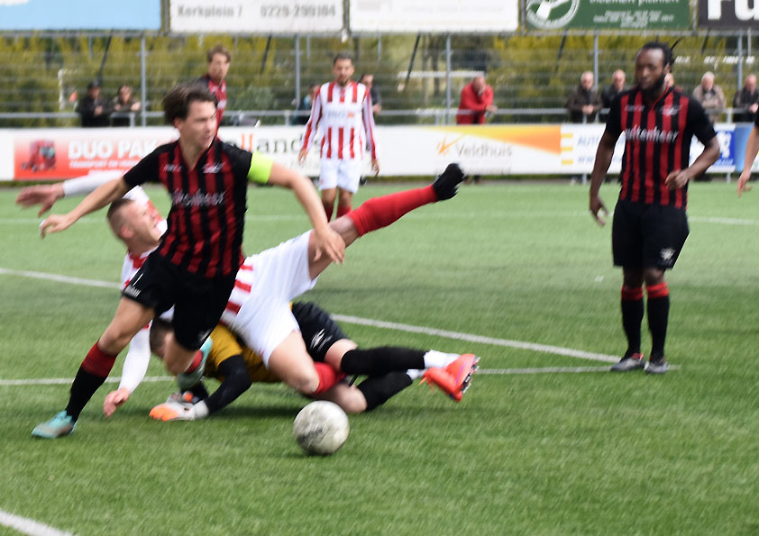 Geen penalty voor Geinoord bij deze situatie in het strafschopgebied van Zwaluwen. (foto Gerard van Vliet)