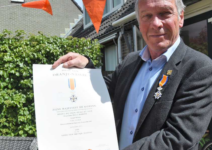 Onze sportfotograaf Gerard van Vliet, wekelijks bij Geinoord in actie voor pen.nl, werd door het thuisfront in de bloemetjes gezet na zijn koninklijke onderscheiding.