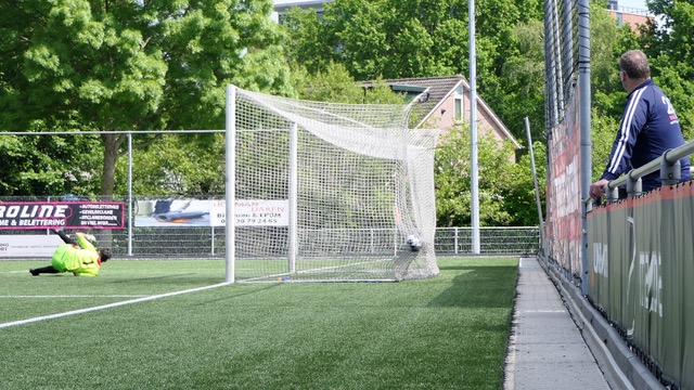 Het begon zo goed voor Geinoord. Aanvoerder Michel van der Valk heeft hier binnen vijf minuten de 0-1 op zijn naam gebracht. Uiteindelijk zou de Nieuwegeinse ploeg op de valreep met 2-1 verliezen. (Foto: Gerard van Vliet)