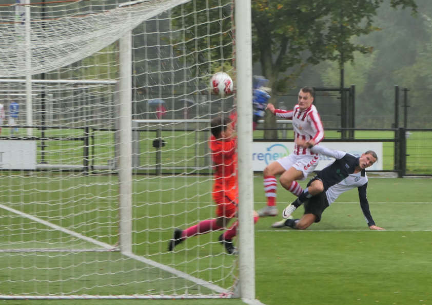 ‘Ook in deze tweede bekerwedstrijd liep Geinoord tegen een rode kaart op omdat aanvoerder Michiel van der Valk in blessuretijd tegen zijn tweede gele kaart opliep. Vorige week overkwam Mark de Koning hetzelfde in de uitwedstrijd tegen FC De Bilt. Laatstgenoemde club won de tweede wedstrijd tegen Pancratius met ruime cijfers (3-5) zodat Geinoord komende zaterdag plaatsing in de volgende bekerronde in eigen hand heeft.’
