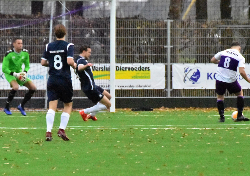Foto: LRC is de defensie van Geinoord weer te slim af en zal via Bart Barendregt de Leerdamse ploeg op 2-0 voorsprong zetten (foto Gerard van Vliet)