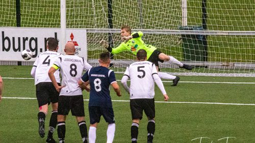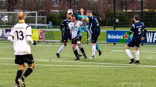 Toch leek het ondanks de numerieke minderheid alsnog goed uit te pakken voor Geinoord toen Timo Meerding een vrije trap forceerde die door Sven Banfi met een effectvolle inzet tot doelpunt werd gepromoveerd: 1-3. Nu leek de buit binnen maar zoals eerder dit seizoen tegen CDW en Victoria bleek die marge niet toereikend voor Geinoord. Rowan Mankers maakte heel snel de aansluitingstreffer en in blessuretijd wist JSV de dreigende nederlaag ongedaan te maken door een scrimmage doeltreffend af te ronden: 3-3. Ondanks het verschrikkelijk slechte weer zag ik – en met mij de andere kijkers – een boeiende derby tussen twee teams die dit seizoen geen hoogvliegers zullen zijn. En nog alles moeten doen om onderin weg te kruipen.