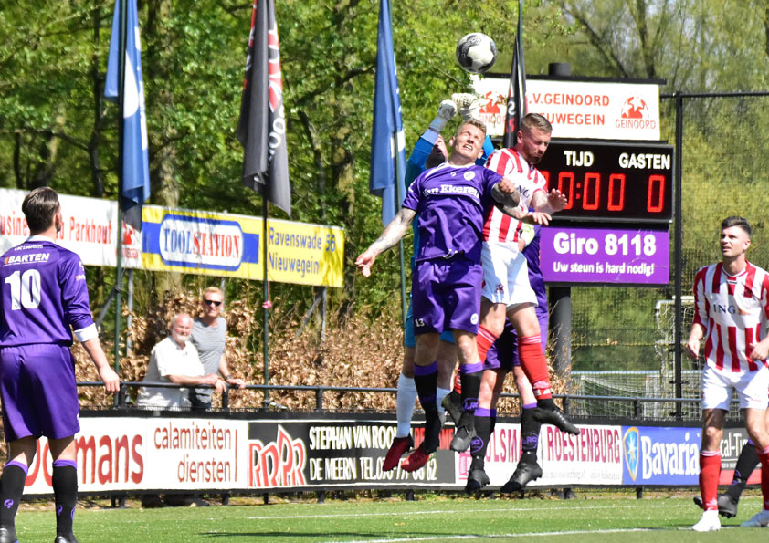 Op deze zaterdag was dat wel het geval tegen LRC dat pas ver in blessuretijd de enige treffer maakte via Arwin van Soest die een voorzet van Rick van Loo alsnog langs doelman Pascal Florie werkte. Voor de ploeg uit Leerdam een bevrijdende treffer omdat de formatie kansrijk blijft in de strijd om de derde periodetitel. En voor Geinoord veranderde er niets want ook ‘rivaal’ GJS verloor weer met dikke cijfers en zal vrijwel zeker degraderen. Het wachten is dus op de nacompetitie die over een maand zal beginnen. Hopelijk zal ik dan weer als toeschouwer langs de lijn staan!
