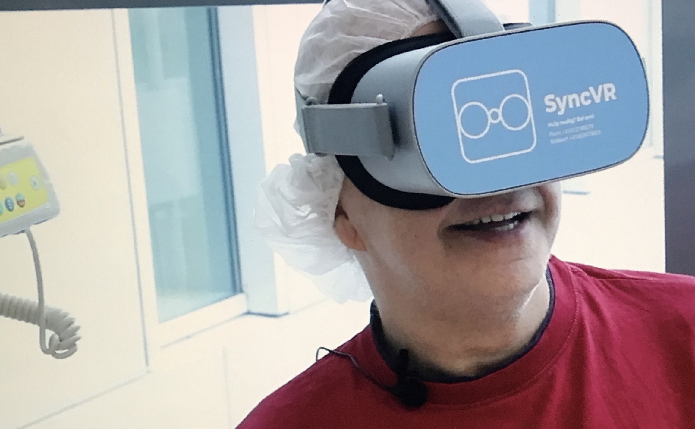 Op de oncologieafdeling zit een man genietend in zijn stoel. Hij heeft een VR-bril op. “Ik ben in Schotland. Het is net echt. Volgens mij zie ik daar in de verte zelfs het Monster van Loch Ness”, grapt hij. Hij draait zijn hoofd naar rechts. “Hé, daar gaat een trein. Heel mooi dit!”