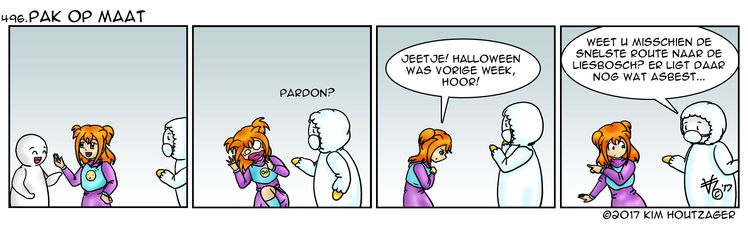 Kim: ‘Er was een brand in Nieuwegein, waarover een week later nog steeds gepraat wordt. Gelukkig niet omdat de halve stad afgebrand zou zijn, maar omdat er asbest is vrijgekomen! De mannen in witte pakken waren dan ook snel ter plaatse. Maar ja – waar men nog het meeste over praat is dat de bedrijven die slachtoffer zijn geworden het reinigen zelf mogen betalen! Uiteraard kan de verzekering dit claimen bij de veroorzaker, maar dat zal niet binnen een dag, een week, een maand geregeld en uitbetaald zijn. Wie betaalt de mannen in witte pakken als ze hun werk hebben gedaan? En waar gaan ze heen?!’