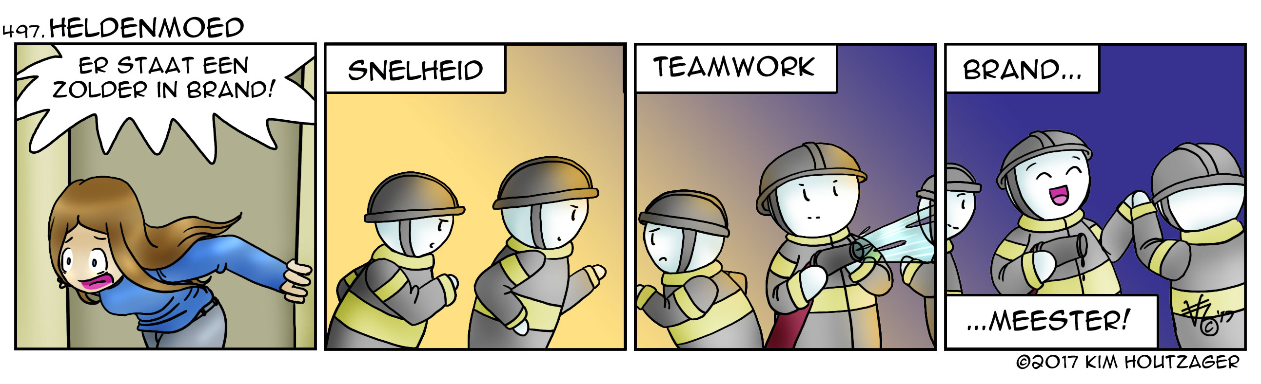 Kim: ‘Vorige week was ik aan het tekenen, toen ik opeens een klap hoorde. Nog geen 10 seconden laten kwam er een brandweerwagen voorbij. Om één of andere reden moest ik naar buiten en ging opeens alles in sneltreinvaart. Vlammen, uit het dak. Nee, niet mijn huis, gelukkig, maar ik kon ze wel vanuit mijn tuin zien. Gelukkig was de brandweer snel ter plaatse en is er alleen materiële schade te betreuren. Ik ben er nog steeds ondersteboven van, dus dit is mijn dankjewel aan de brandweer. Jullie zijn toppers en mensen waarderen soms niet genoeg wat jullie doen.’