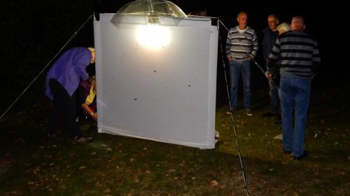 Afgelopen nacht hield Buitenwijs voor de vrijwilligers, die bij de Natuur- en Milieu-educatie meewerken, en voor vlindertellers een nachtexcursie Deze werd gehouden nabij het MEC in Park Oudegein. Na een korte inleiding binnen gingen twintig enthousiastelingen naar buiten om nachtvlinders te zoeken. Ze hadden daar twee manieren voor.