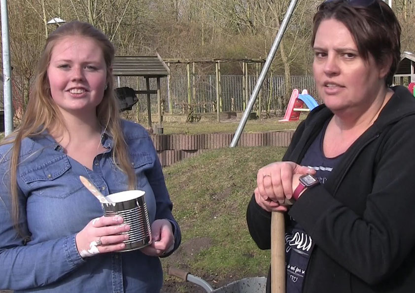 Om half 10 vertrok een groep van vier studenten met de wethouders Johan Gadella en Peter Snoeren richting basisschool Lucas Galecop om het schoolplein samen te voorzien van planten en bomen. Met een kwast in de hand ging een andere groep studenten op weg naar Bouwspeeltuin Bouwgein. Daar zorgden zij er samen voor dat de gebouwen van de speeltuin weer een nieuw likje verf kregen.