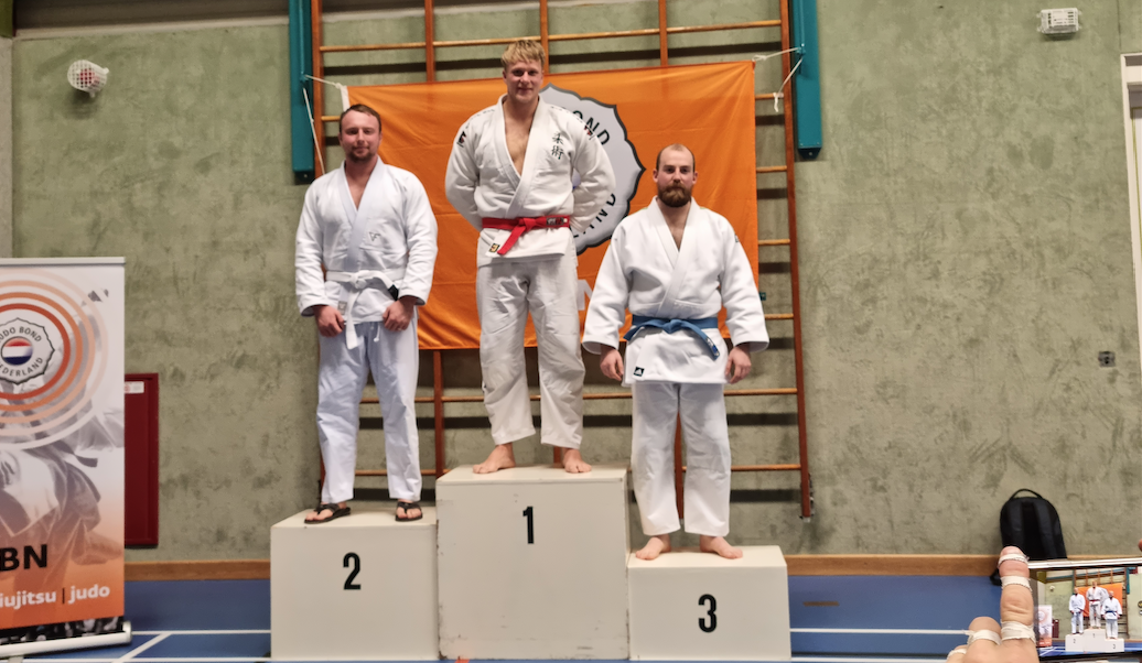 Met 7 gouden, 6 zilveren en 7 bronzen medailles wisten de jiu-jitsuka’s van DeMix/Bsp Holland uit Nieuwegein een tweede plaats te bemachtigen op het sterk bezette kampioenschap van Oost Nederland. ‘Met deelnemers uit Zweden, Denemarken, Duitsland, België en Nederland is dit natuurlijk een zeer goed resultaat,’ aldus coach van Bommel die onder andere werd ondersteund door junioren Wereldkampioen Tanisha Baars.