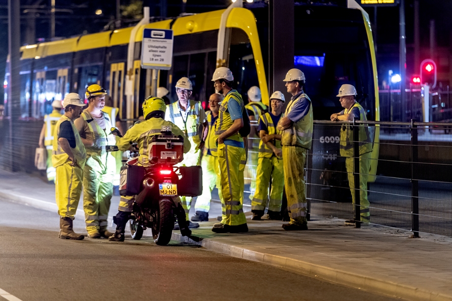 Foto: Test team en verkeersregelaars bij tramlijn 22 Utrecht C.S.- Science Park Utrecht