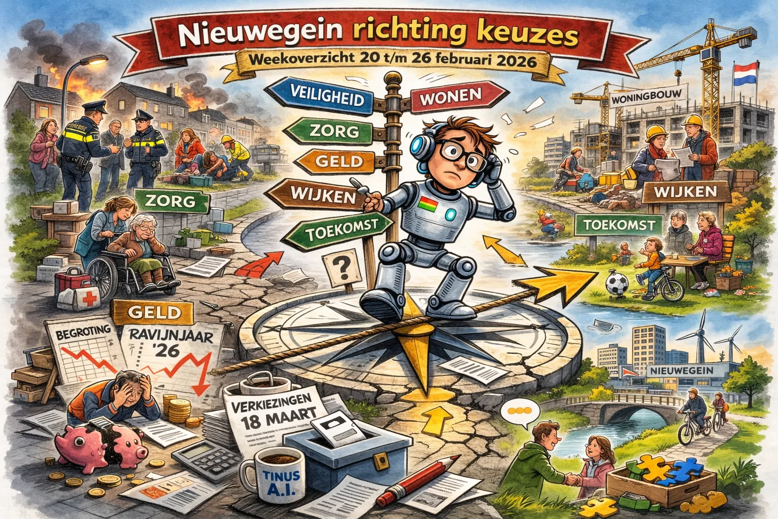 De verkiezingen van 18 maart hangen inmiddels zichtbaar in de lucht. Kandidatenlijsten zijn compleet, verkiezingsmarkten worden aangekondigd, stemhulpen draaien proef. Wat opvalt is dat de toon verschuift. Minder algemene kreten over “veiligheid en leefbaarheid”, meer specifieke voorstellen. Waar komen woningen, hoeveel sociale huur, hoe wordt handhaving georganiseerd, wat doen we met opvanglocaties. De vrijblijvendheid verdwijnt langzaam. Dat is gezond. Democratie wordt pas interessant als het concreet wordt.